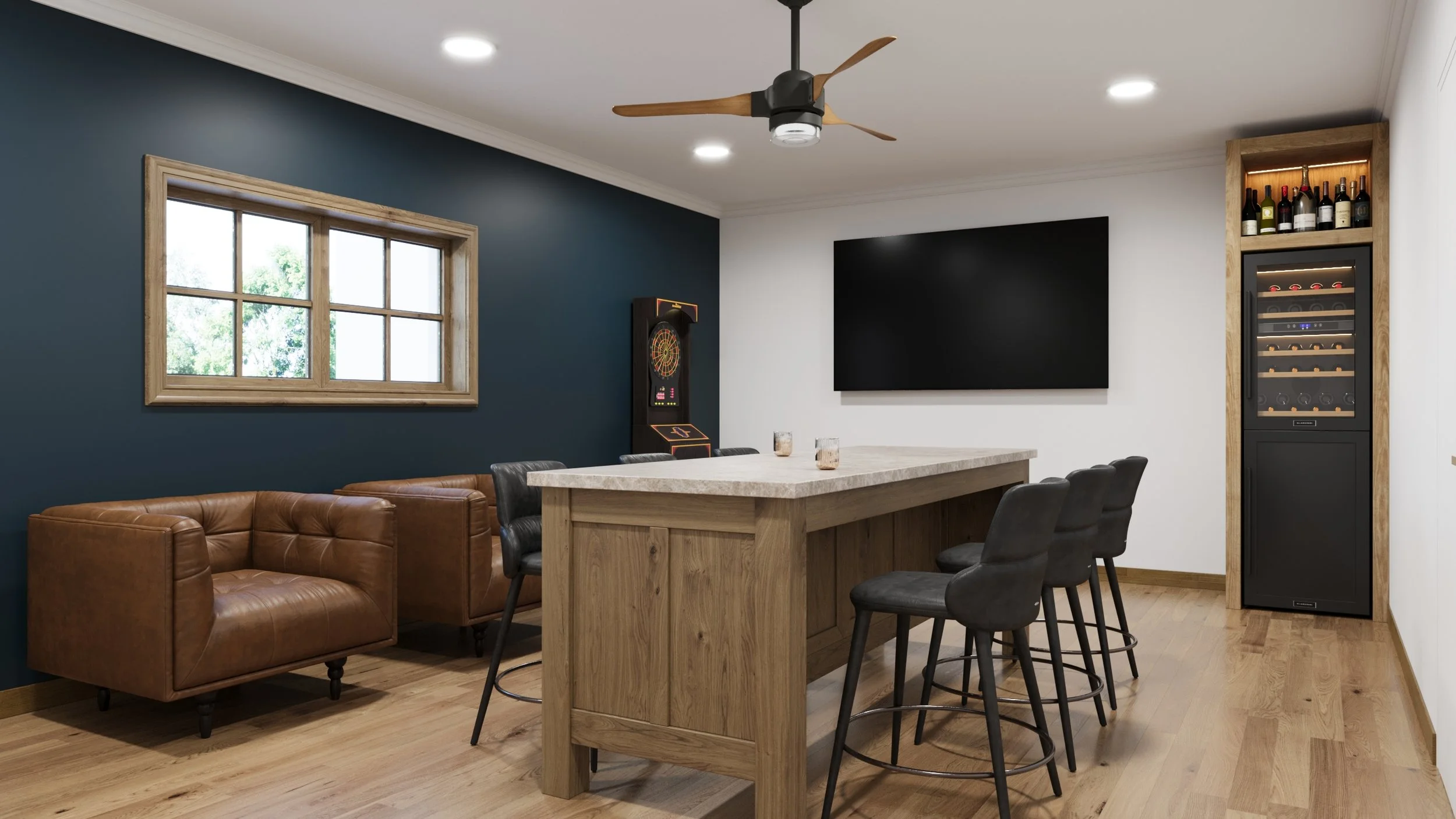 This spacious and intentional design allows celebrations to feel both grand and inviting. A custom-built, statement-making grand bar anchors the room as a natural gathering place, complemented by refined white oak accents that add understated elegance. A graceful stairway provides a stunning setting for new introductions, photographs, and unforgettable entrances, elevating every moment of arrival.